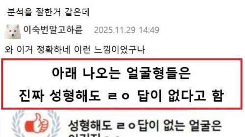 이 포스팅은 제휴마케팅 일환으로, 이에 따른 일정액의 수수료를 제공받습니다. 성형해도 ㄹㅇ 답이없는 얼굴형 ㄷㄷㄷ December 4, 2025 pullman Post Views: 223