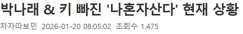 박나래 & 키 빠진 ‘나혼자산다’ 현재 충격적인 상황 January 20, 2026 pullman 박나래 & 키 빠진 ‘나혼자산다’ 현재 충격적인 상황 두 명빠지고 최근 근황이라는데… Post Views: 44